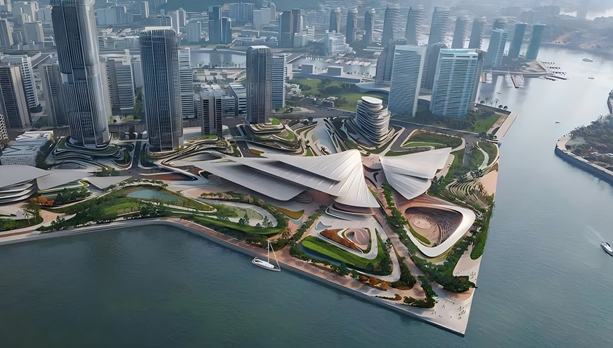 The Hainan International Cultural Exchange Center project is a dual point project at the provincial and municipal levels, with a total construction area of approximately 94000 square meters. The construction includes a grand theater, a multifunctional hall, a public art experience area, a public service area, and supporting facilities. After completion, the project will become an international art landmark in Hainan and a coastal reception hall of Hainan Free Trade Port, further enriching mass cultural activities and meeting the spiritual needs of the people.